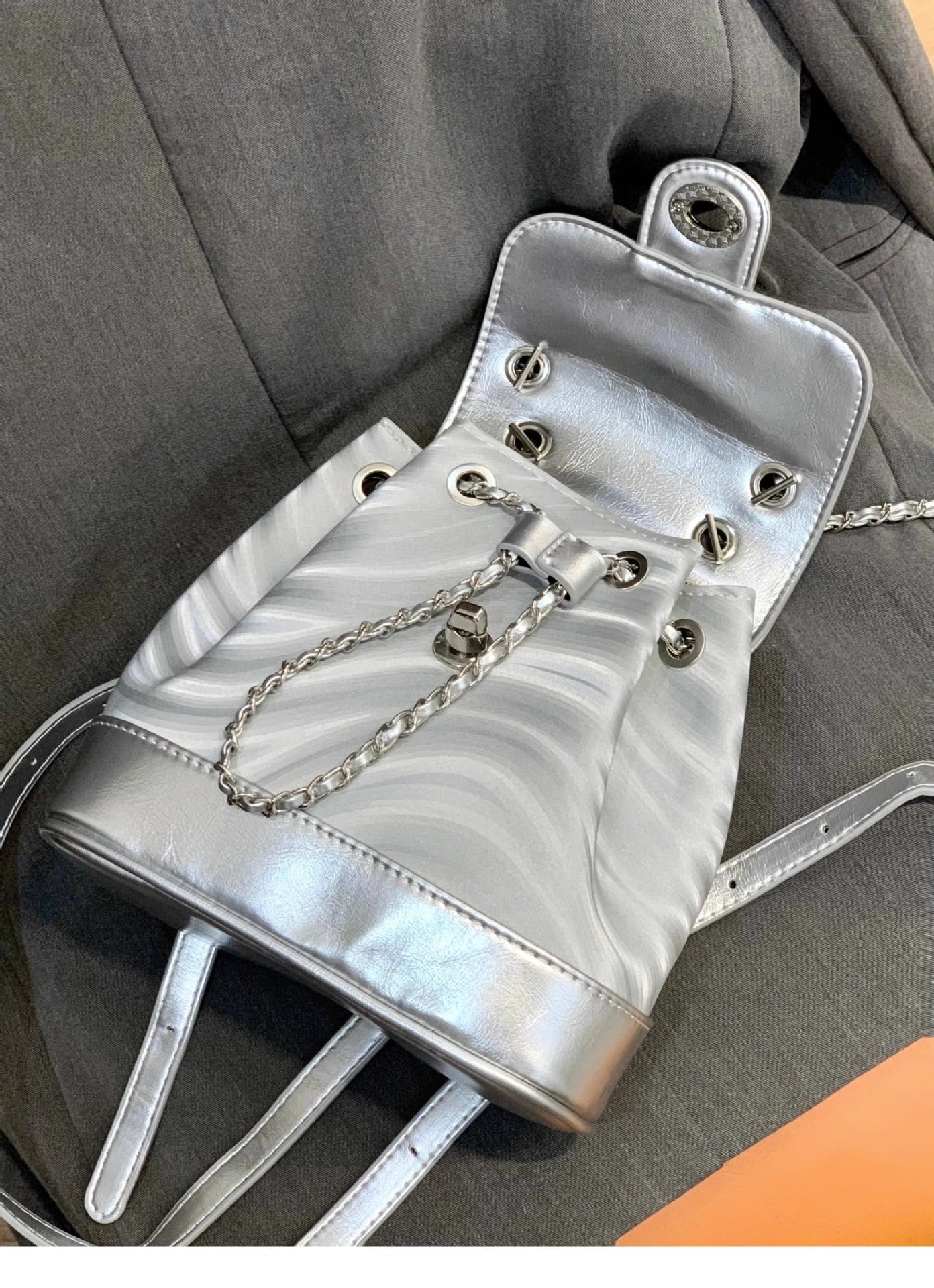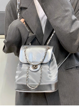 Chain Backpack Women's Water Ripple Fashion Travel Backpack Bags