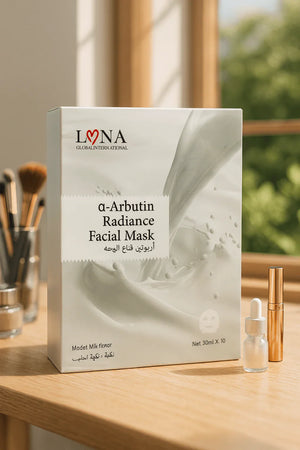 Reveal your natural glow with LONA A-Arbutin Radiance Facial Masks, expertly formulated to deeply hydrate, brighten, and revitalize your skin.